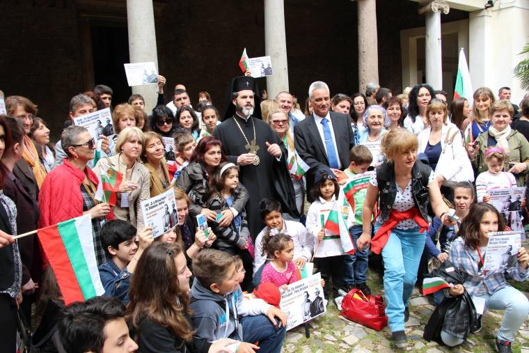 Самото честванe на 24 май- деня на светите братя Кирил и Методий се състоя в базиликата "Сан Клементе" c молебен на гроба на Свети Кирил Философ. Там всички ние заедно с българската делегация, водена от министър-председателя Бойко Борисов, бяхме посрещнати от Негово Високопреосвещенство Антоний (митрополит за Западна и Средна Европа). Пред мощите на Свети Кирил се срещнахме и с пристигналите в този ден в Рим българи от различни краища на Италия, които с гордост се снимаха пред лозунга на нашето училище.